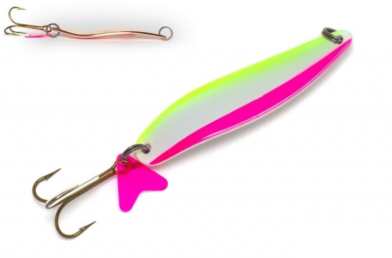 Вытянутая изогнутая пластина блесны German Универсал 8118 наделает ее массой преимуществ. Во-первых, это размашистая игра, которая раскрывается с первой потяжкой и подходит как для течения, так и для стоячей воды. Во-вторых, прогонистая форма и масса 16 грамм улучшают кастинговые характеристики этой модели. Уловистая и дальнобойная блесна Универсал 8118 подходит для ловли судака, охоты на щуку, горбача-окуня и некоторых крупных лососевых. Возле крючка на заводном кольце закреплен яркий лепесток, провоцирующий хищника на нападение.