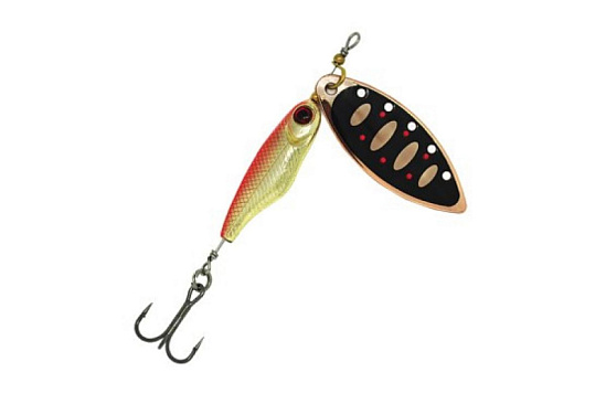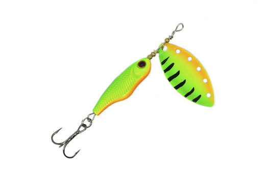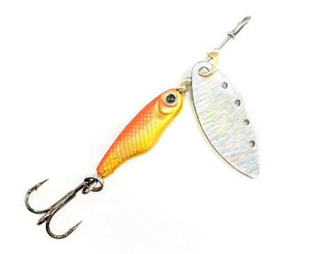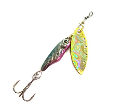Сердечник, что имитирует рыбку, - изюминка Spin Blade от Mottomo. Визуальному сходству способствует рифление: оно обрисовывает жабры и чешуйки. Есть у блесны и "живые" глаза. Сердечник отвечает за стабильность приманки в воде и во время заброса. Игру создает вытянутый лепесток, у которого по одному краю расположены сквозные отверстия. Они помогают "сбросить" излишний напор воды и усиливают шумовые вибрации. Вертушка ориентирована на рыбалку в проточных водоемах и среднюю и быструю анимацию. Подойдет для ловли лососевой, окуневой, щучьей и охоты на белых хищников. Оснащаются Спин Блейд тройниками собственного производства бренда, что наделены острейшей заточкой.