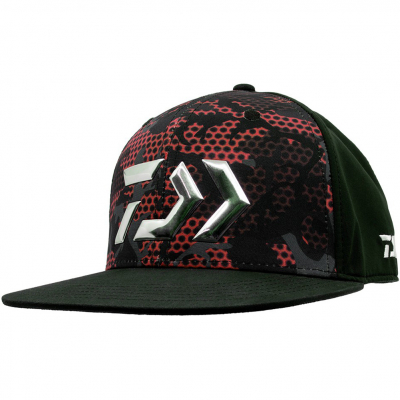 Кепка с плоским козырьком, украшенна новым рисунком Daiwa и большим тисненым хромированным логотипом D-Vec спереди.