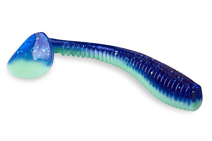 Большинство атак хищника приходится на боковую часть силиконовой приманки в районе хвоста и при атаке хвост просто складывается, сохраняя ее целой. Такая конструкция модели позволила использовать мягкий материал, благодаря которому игра силиконовой приманки становится значительно активнее.