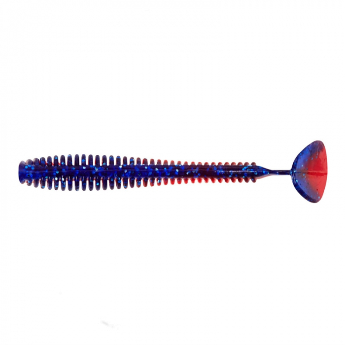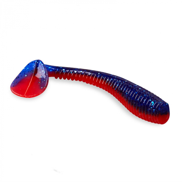 Большинство атак хищника приходится на боковую часть силиконовой приманки в районе хвоста и при атаке хвост просто складывается, сохраняя ее целой. Такая конструкция модели позволила использовать мягкий материал, благодаря которому игра силиконовой приманки становится значительно активнее.