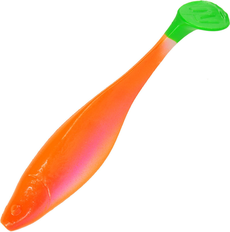Приманка выполнена из мягкого, но очень прочного материала. В передней части брюшка расположена «подошва» придающая приманке неотразимые и мощные колебания. Хвост средних размеров, во время проводки не только машет из стороны в сторону, но и подкручивается вокруг своей оси, чем создает дополнительную турбулентность.