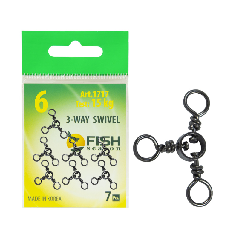 Ни одна рыболовная оснастка не обходится без этих необходимых мелочей. Если не применять эти связующие элементы или использовать их сомнительного качества, рыбалка наверняка будет испорчена. Ведь в подавляющем большинстве случаев, на рыбалке эти мелочи просто необходимы! С помощью вертлюжка на три направления, с кольцом Fish Season можно предотвратить закручивание и запутывание лески, привязать подвижный отводной поводок, быстро поменять воблер или блесну на спиннинге. Эти вертлюги используются в карповых, фидерных, поплавочных и живцовых оснастках. Очень эффективны оснастки с вертлюгами при ловле на течении. Тест в килограммах, указанный на этикетке, является критической нагрузкой, при которой происходит полное разрушение изделия. Необходимо помнить, что при нагрузках, примерно на 30% меньше критических, уже начинается деформация изделия. Поэтому, если при ловле изделие испытывает большие нагрузки, осматривайте его чаще, чтобы при обнаружении изменения формы своевременно заменить его на новое.