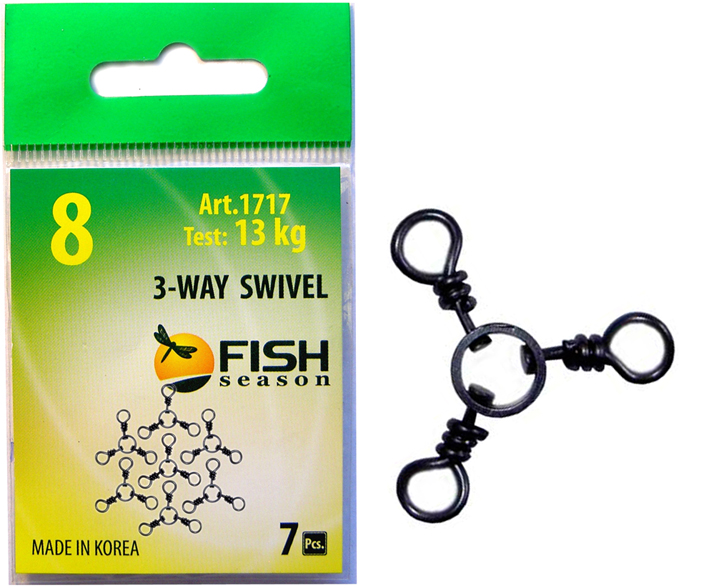 Ни одна рыболовная оснастка не обходится без этих необходимых мелочей. Если не применять эти связующие элементы или использовать их сомнительного качества, рыбалка наверняка будет испорчена. Ведь в подавляющем большинстве случаев, на рыбалке эти мелочи просто необходимы! С помощью вертлюжка на три направления, с кольцом Fish Season можно предотвратить закручивание и запутывание лески, привязать подвижный отводной поводок, быстро поменять воблер или блесну на спиннинге. Эти вертлюги используются в карповых, фидерных, поплавочных и живцовых оснастках. Очень эффективны оснастки с вертлюгами при ловле на течении. Тест в килограммах, указанный на этикетке, является критической нагрузкой, при которой происходит полное разрушение изделия. Необходимо помнить, что при нагрузках, примерно на 30% меньше критических, уже начинается деформация изделия. Поэтому, если при ловле изделие испытывает большие нагрузки, осматривайте его чаще, чтобы при обнаружении изменения формы своевременно заменить его на новое.