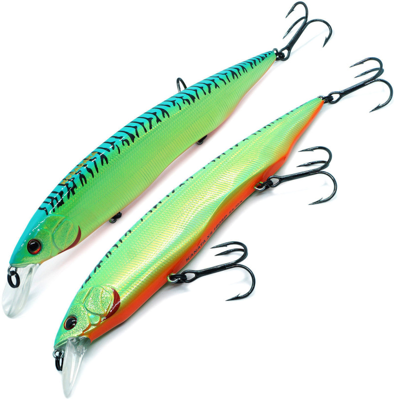 Воблер Kosadaka Kanata XS 160F – объемный дальнобойный не шумовой минноу, созданный для охоты на крупного хищника. Приманка имеет очень качественное, максимально похожее на живой объект внешнее исполнение, что в совокупности с весьма натуралистичным поведением в воде делает ее желанным гостем в пасти хищной рыбы.