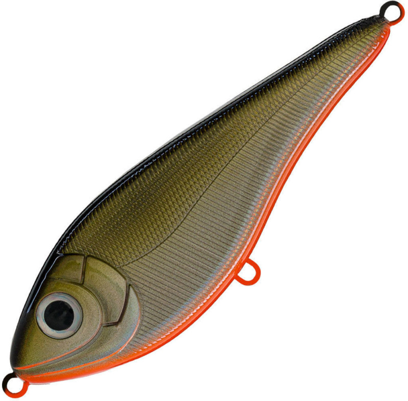 Приманка обладает очень красивой игрой благодаря особенному расположению огрузки. Во время пауз проводки приманка соблазнительно покачивает боками. На коротких ритмичных рывочках джеркбейт красиво рыскает из стороны в сторону. На более размашистых рывках игра Buster Jerk V приобретает широкую амплитуду. В проводку приманки обязательно нужно включать непродолжительные паузы. Джеркбейт очень прост в обращении и легко управляем. Strike Pro Buster Jerk V предназначен для ловли средней и крупной щуки и крупного окуня.