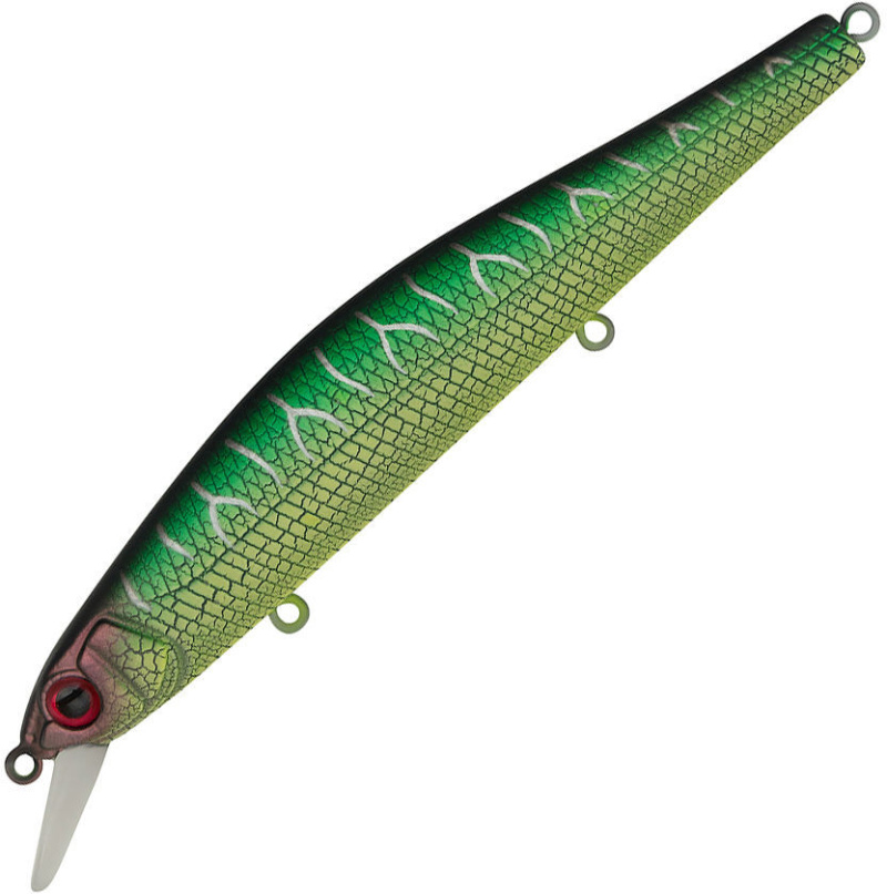 Воблер Strike Pro Inquisitor 110SP - новинка сезона 14-го года. Обладает нейтральной плавучестью, рабочий горизонт до полутора метров. По форме вытянутого и поджатого по бокам с горбиком тела относится к минноу. Особенностью приманки является магнитная система дальнего заброса. Мощности магнита достаточно для ограничения свободного хода шариков при горизонтальном положении. Но при забросе в положении хвостом вниз они смещаются в хвостовую часть и положительно влияют на аэродинамику. Небольшая лопасть воблера Strike Pro Inquisitor 110SP (NEW) установлена под углом около 30°. Монтажная петля зафиксирована в носовой части с небольшим наклоном. Приманка легко управляется, хорошо контролируется при проводке, быстро занимает рабочий горизонт. На вооружении стоят пара тройников от Owner, подвешенных через заводные кольца. Благодаря качественной фурнитуре воблер отлично справляется с подсечкой крупного хищника, надежно держит энергичную рыбу до конца вываживания. Воблер Strike Pro Inquisitor 110SP (NEW) отличается активной и устойчивой игрой. Для анимации используется стандартный для минноу набор проводок: равномерная, stop and go, рывковая. Последняя дает наиболее привлекательную игру и приносит максимальные результаты. На рывках разной интенсивности совершает выраженные колебания корпусом, хорошо держит заданный горизонт. При равномерной проводке движения мягкие с отчетливыми осевыми доворотами. Во время потяжек с паузами демонстрирует привлекательные покачивания боками. Больше тридцати цветовых модификаций воблера Strike Pro Inquisitor 110SP позволяют подобрать необходимый вариант оформления для результативного лова в чистом или заиленном водоеме, для ночной ловли. В палитре большой выбор различных сочетаний природных оттенков, кислотных окрасок. Особого внимания заслуживают флуоресцентные и светящиеся варианты покрытий. Тщательная детализация позволяет различать выполненные рельефом жаберные крышки, нанесенную наклонными насечками чешую. Реалистично выглядят голографические глаза. ЛКП достаточно качественное и прочное, чтобы выдержать сезон без критических повреждений. Воблер Strike Pro Inquisitor 110SP хорошо отрабатывает любого хищника, но основную часть добычи составляют окунь, жерех, некрупная щука.