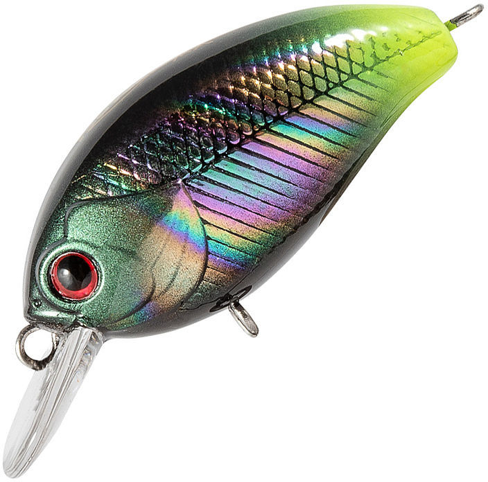 Миниатюрное тело крэнка (36 мм) имеет рельефную поверхность. Два различных типа фактуры в сочетании отлично имитируют чешую. Ромбовидные насечки со спинки переходят на бок до боковой линии приманки. Косые линии в нижней части тела плавно заходят на брюшко. Голова крэнка рельефная и повторяет линиями жаберные крышки малька. Объемные глаза приманки, несомненно, послужат точкой прицеливания атаки хищника. Большая гамма ярких и насыщенных окрасок придутся по вкусу даже самому привередливому хищнику.