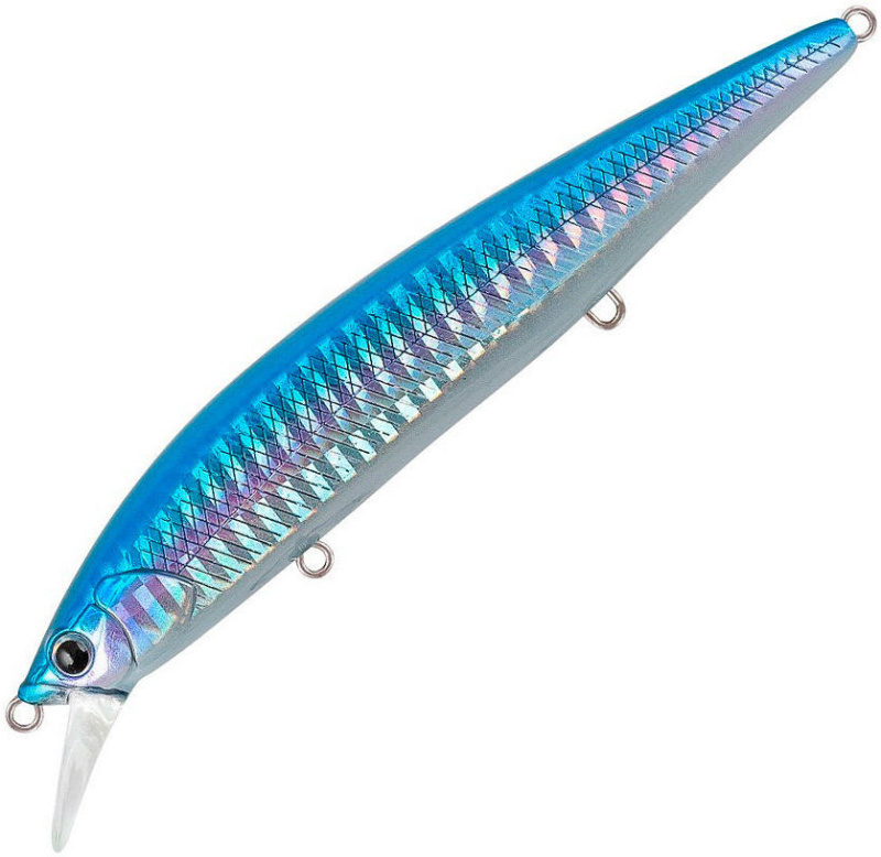 Особенности дизайна: Colector 110 SP имеет две разделенные боковой линией рельефные фактуры поверхности. Верхняя часть выполнена в виде ромбовидных насечек, нижняя - в виде косых насечек, создающих эффект рыбьей чешуи. Головная часть воблера имитирует жаберные крышки рыбки. Вклеенные 3D-глаза завершают реалистичный дизайн приманки. Colector 110 SP оснащен тремя острейшими тройниками соответствующего приманке размера, силовой фурнитурой и заводными кольцами. Лакокрасочное покрытие качественное и прочное, соответствующее всем современным стандартам. В конструкции воблера применена эффективная система дальнего заброса, а также система баланса, которые при проводке создают довольно громкое шумовое сопровождение.