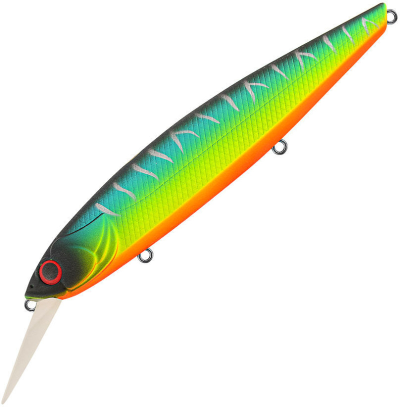 Воблер TsuYoki Draga MR - крупный представитель класса минноу, выступает в качестве глубоководного исполнения популярной модели Draga 130, которая заняла лидирующие позиции в ассортименте компании TsuYoki. Диповая модель TsuYoki Draga MR является действительной находкой в случае необходимости выманивания щуки с 4-5 метровой глубины, когда приманка будет погружаться до 2,5 м. Тело приманки имеет исполнение в виде сильно вытянутой формы без особо видимого изгиба оси, но с поперечным сечением, приближенным к круглому, а также с небольшой лопастью, которая располагается к его поверхности под углом 45 градусов. Солидный вес, система дальнего заброса и хорошая геометрия позволяют данной приманке совершать полет до 35 м.