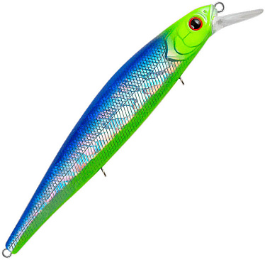 Минноу b>TsuYoki Flirt имеет весьма длинное тело - 115 мм длиной при среднем весе в 16,5 гр. Максимальный рабочий горизонт приманки, который она быстро набирает и отлично удерживает, составляет 1-1,8 метра. Данная модель будет просто незаменима при лове щуки в закоряженных местах. Также подойдет и для ночного судака. А для того чтобы хищник никуда не "убежал", минноу оснащается тремя тройниками VMC. Огромная палитра цветов приманки даст возможность оптимально выбрать окраску для любой ситуации.