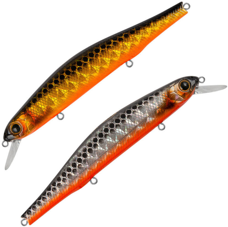 Воблер TsuYoki Watson 110/130 относится к разряду крупных минноу, который отлично зарекомендовал себя в ловле щуки на глубинах до четырех метров. Данная модель имеет уникальную начинку, которая состоит из нескольких систем. Система баланса конструктивно состоит из двух специальных капсул, в которых находятся два металлических шарика. Капсулы расположены в голове и хвосте минноу. Магнитная система дальнего заброса обеспечивает приманке отличные показатели в дальности бросков. Она также состоит из двух стальных шариков, перемещающихся в отдельно отведенном для них канале. Встроенный мощный магнит системы надежно закрепляет шарики во время твичинга, что делает воблер TsuYoki Watson 110/130 "тихим". Во время проводки он практически не издает шума. Это в свою очередь весьма важно при ловле хищника в кристально чистой воде и в запрессованных водоемах.